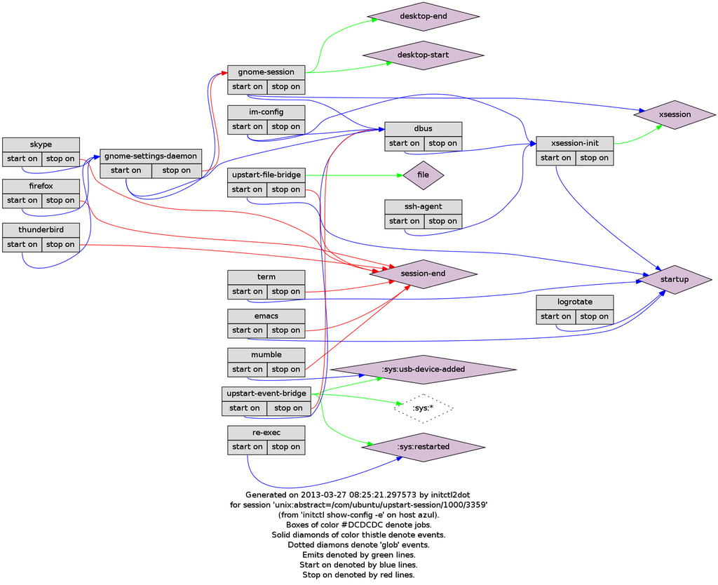 Upstart provides a tool called initctl2dot which generates graphviz visualisations of jobs. Let's run it: